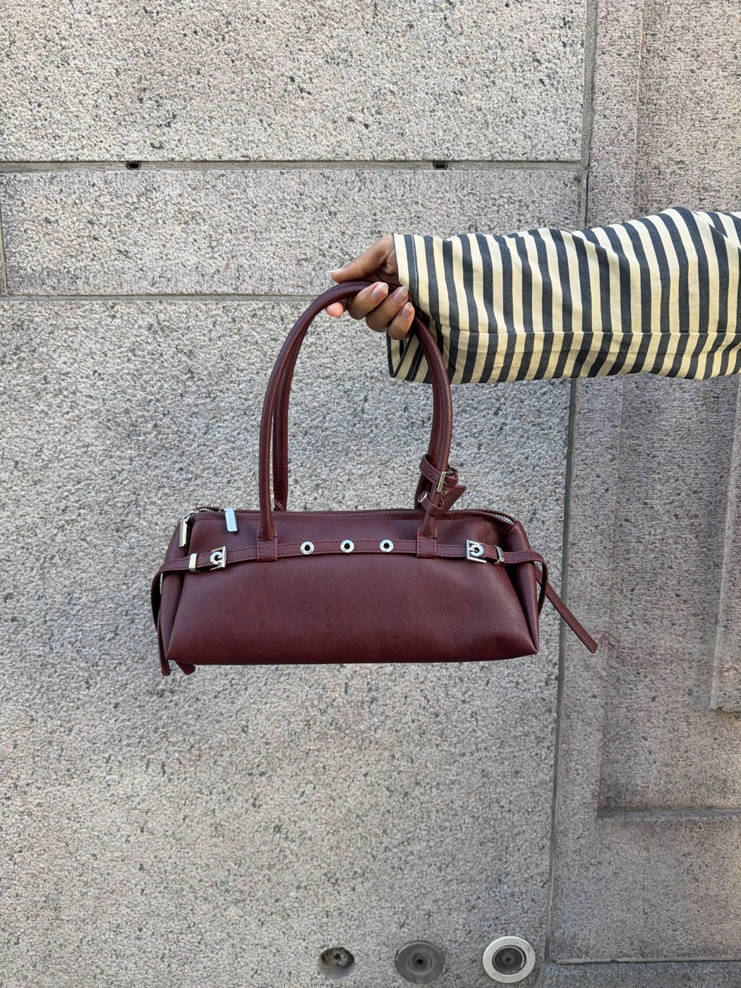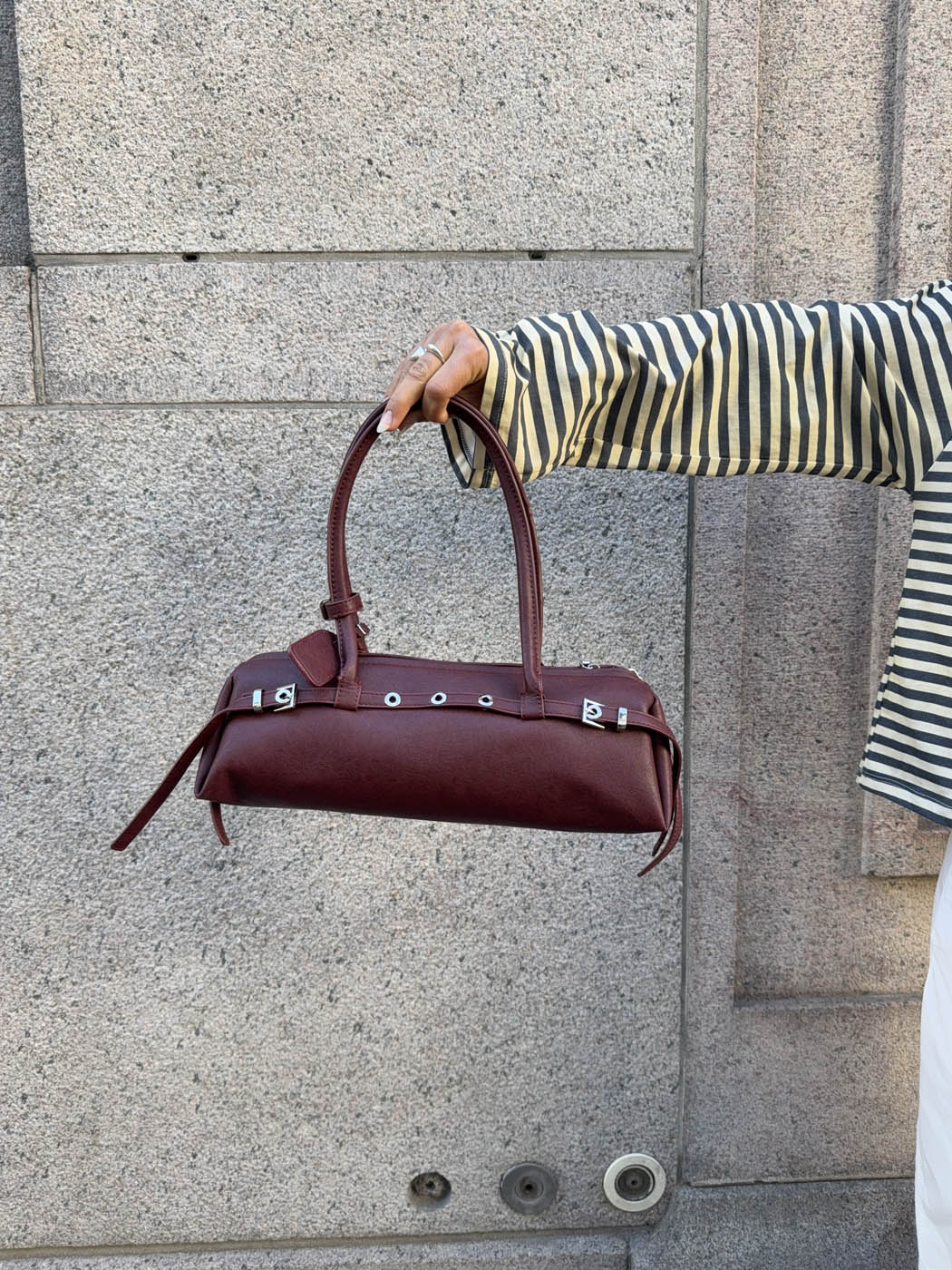 Die Rosina™ Schultertasche | Becker's Amsterdam™ ist ein kompaktes und dennoch stilvolles Accessoire, perfekt für alle, die markante Details ohne Übertreibung schätzen. Sie ist in tiefem Weinrot gehalten und mit Metallknöpfen versehen, die der ansonsten eleganten Schultertasche einen markanten Touch verleihen. Ideal für praktische Styling-Momente, bietet sie Platz für Ihre wichtigsten Utensilien und ist dabei schlank genug, um sowohl zu lässigen als auch zu formellen Outfits getragen zu werden.