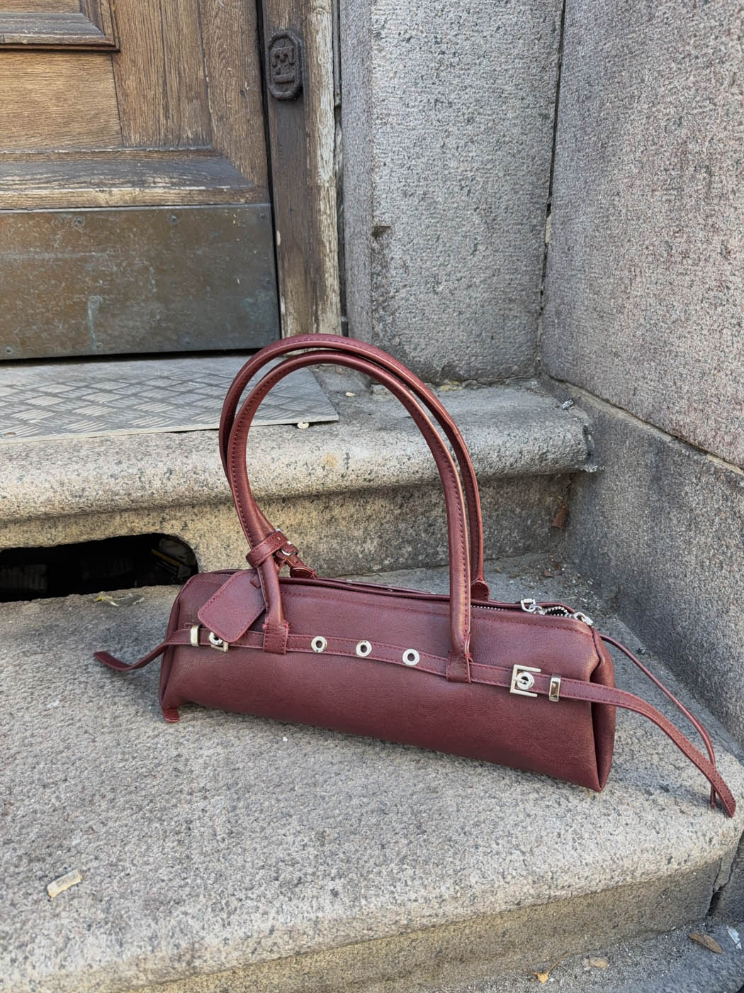 Rosina™ Umhängetasche – Weinrote Umhängetasche mit Metallknöpfen | Becker's Amsterdam